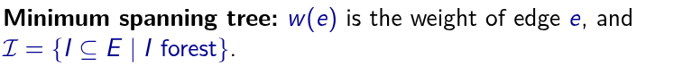 Ein greedy Algorithmus liefert eine optimale Lösung genau dann, wenn das zugrunde liegende Optimierungsproblem durch ein Matroid beschrieben werden kann.