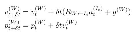 Position pt Geschwindigkeit vt Beschleunigung (Accelerometer-Messung) at Zeitschritt 𝝳t Weltkoordinaten: W Initalisirungskoordinaten (ohne Gravitation): It siehe: RDL VL 03 Sensors