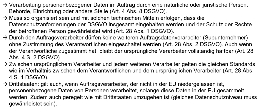 Man muss einen Auftragsdatenverarbeitungsvertrag schließen Man ist immer komplett selbst verantwortlich