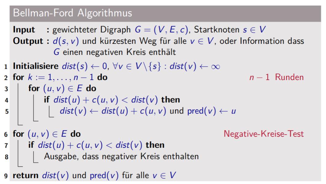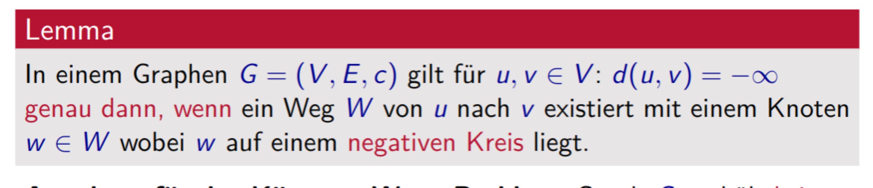 Negative Kreise ⇒ Annahme für das Kürzeste-Wege Problem: Graph G enthält keine negativen Kreise.Link to original Definition