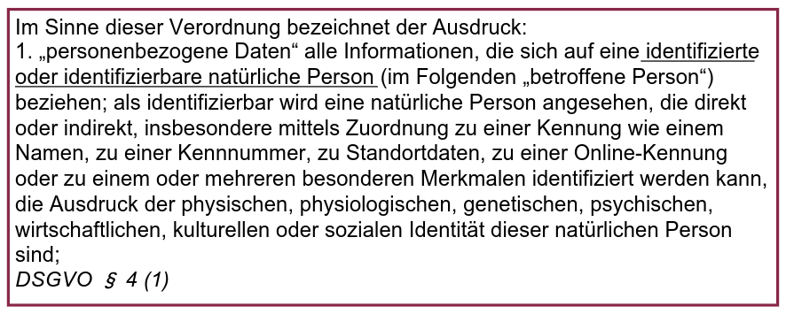 ⇒ Die Verarbeitung von Personenbezogenendaten ist grundsätzlich verboten.