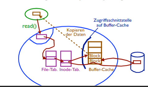 Kerninterne Realisierung von read()/write(): Zugriff über Schnittstelle zu Buffer- Cache: