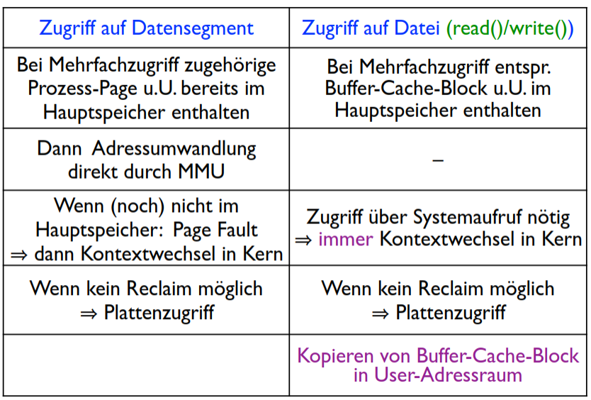 - Umkopieren: User-Adressraum ⟷Buffer-Cache