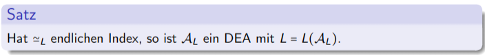 Sei eine Reguläre Sprache. (sodass Die Nerode-Rechtskongruenz einen endlichen Index hat)