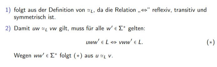 Beweise für Eigenschaften der Nerode-Rechtskongruenz