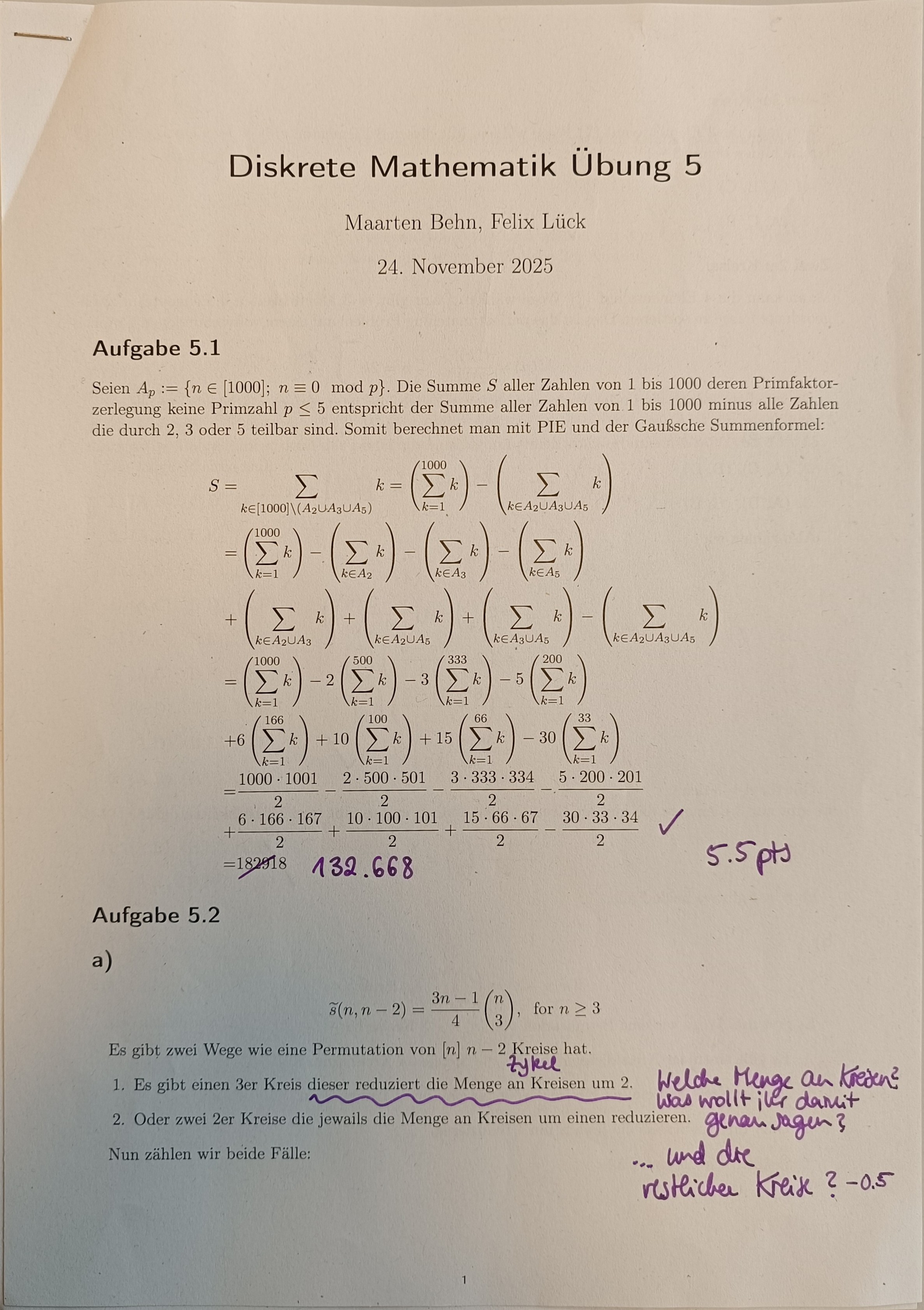 Wir können PIE nutzen sowie die Gaußische Summenformel