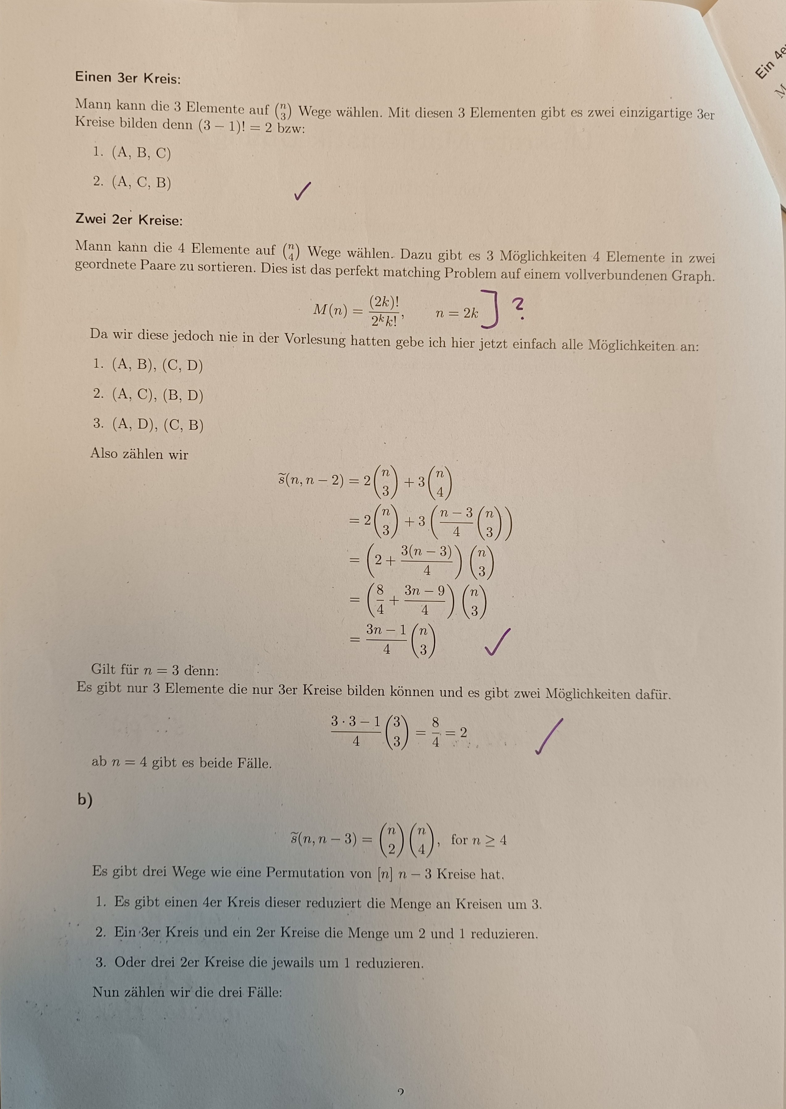 Wie in a) gezeigt könne gibt es zwei Mögliche 3er Kreise.