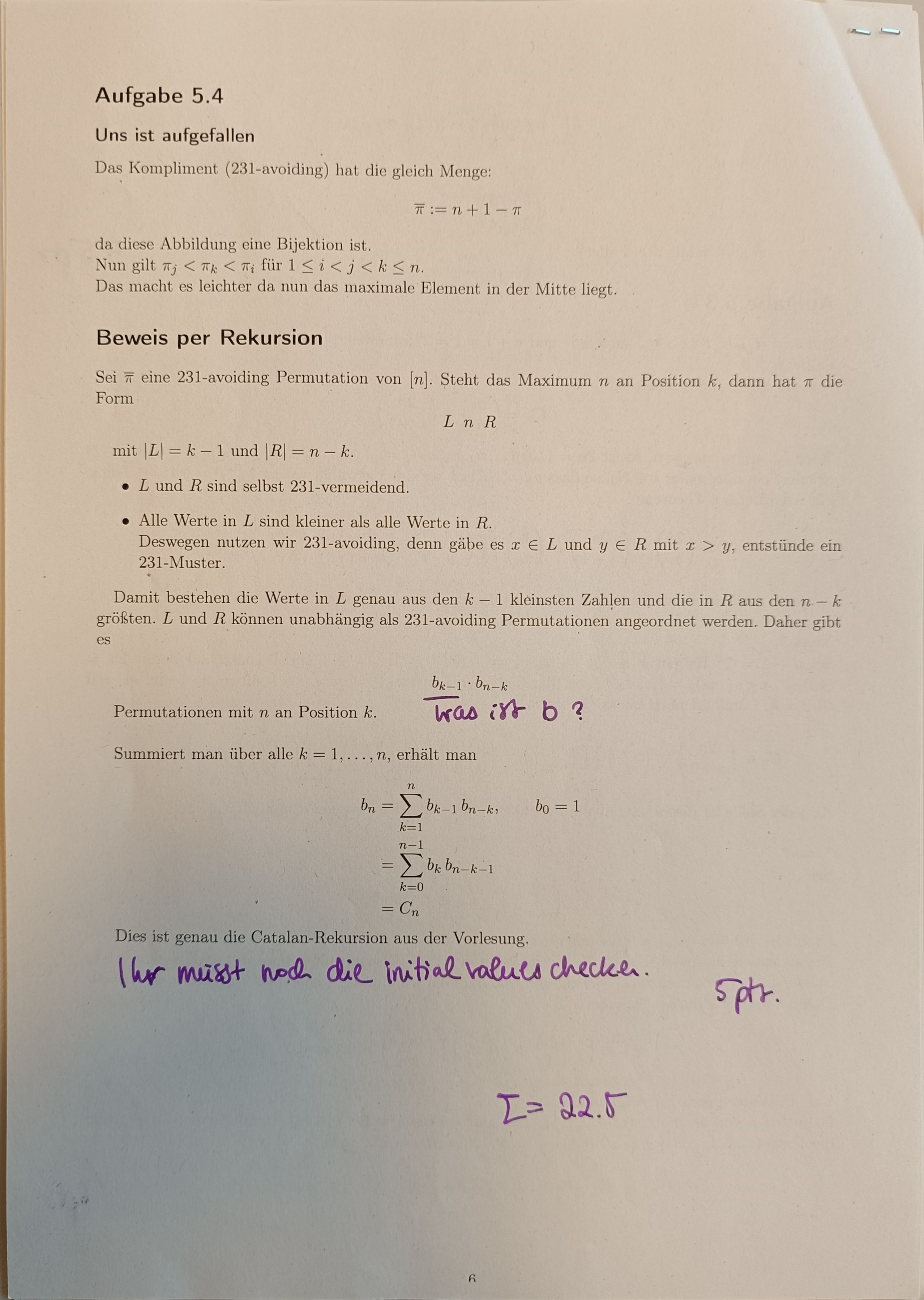 - Alle Werte in sind kleiner als alle Werte in . Deswegen nutzen wir 231-avoiding.