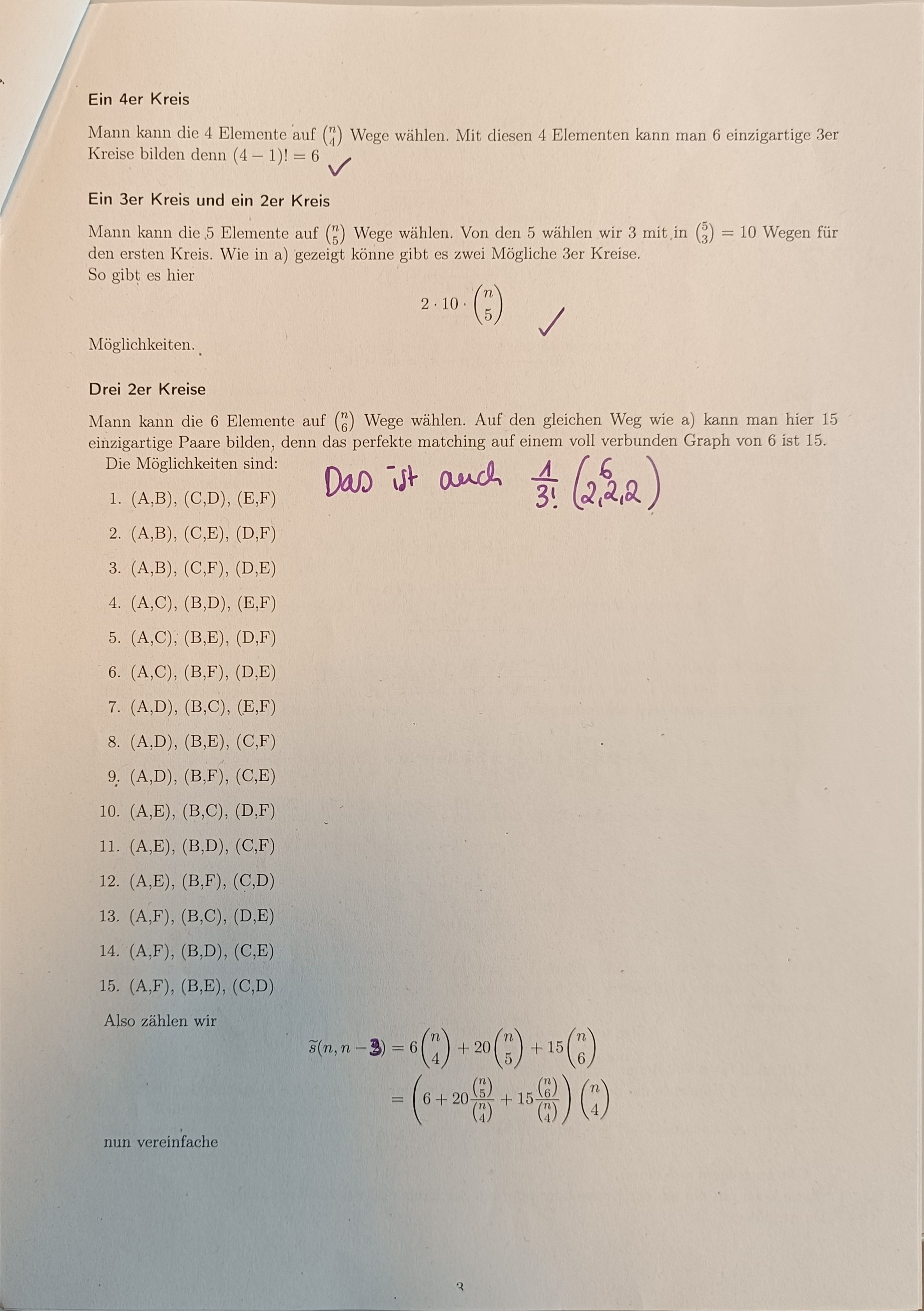 Es gibt einen 3er Kreis dieser reduziert die Menge an Kreisen um 2.