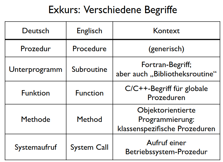 Exkurs Verschiedene Begriffe für Aufrufe