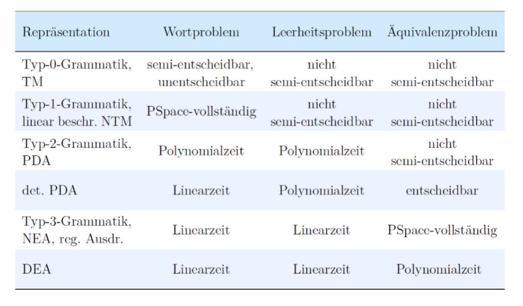 Name Grammatik Sprache äquivalent Typ 0 Jede Turing Maschine Typ 1 monoton linear beschränkte NTM Typ 2 Kontextfreie Grammatik Kontextfreie Sprache Kellerautomat Typ 3 rechtslinear oder Reguläre Sprache DEA, NEA, ε-NEA, wort-NEA siehe: