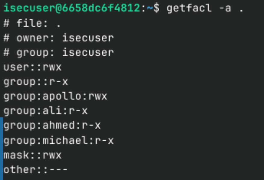 isecuser@b73a3013bbb3:~$ getfacl -a .