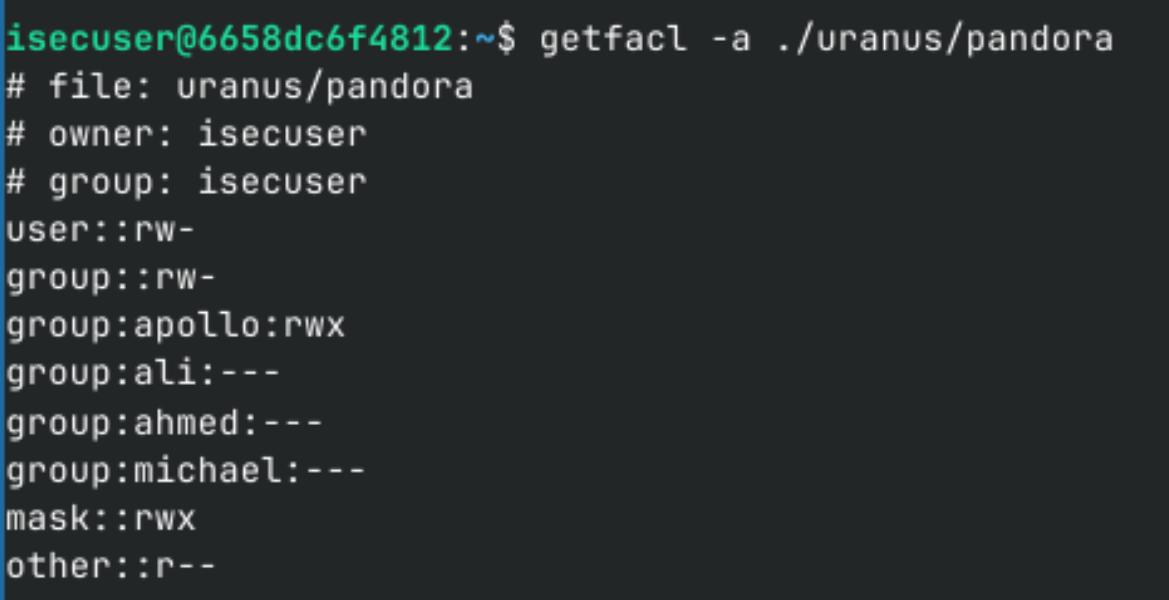 isecuser@b73a3013bbb3:~$ getfacl -a ./jupiter/caliban