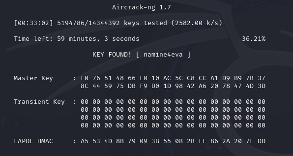 sudo aircrack-ng -w rockyou.txt -b DC:A6:32:C6:7A:6D psk-03.cap