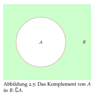 Definition Ist B eine Teilmenge von A so nennt man A\B das Kompliment von B in A und schreibt dafür ∁B.