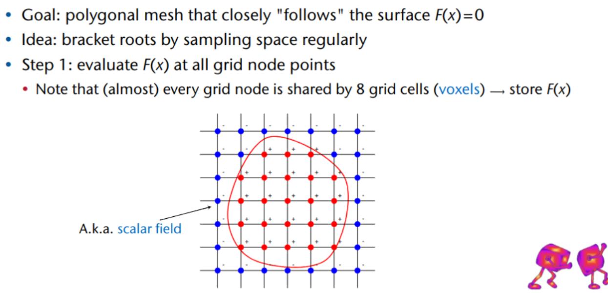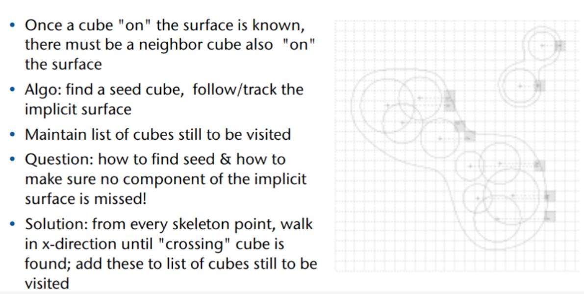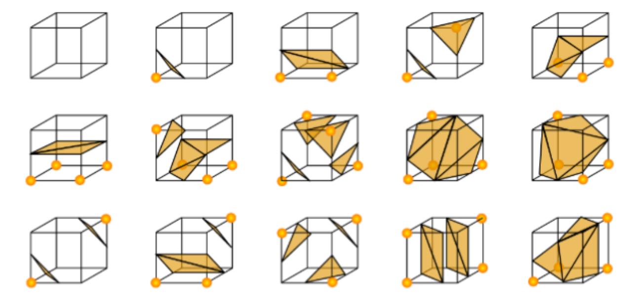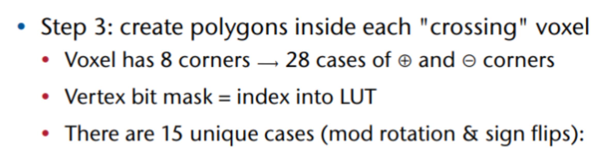 8 Corners ⇒ 256 Configuation ⇒ 15 Unique Configuations Definition Optimizations for Marching Cubes on Implicit Surfaces siehe: Marching Tetrahedra Converting CSG’s to Meshes Using Marching Cubes