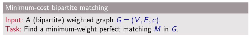 is basically the Maximum-weight bipartite matching with inverted weights. Proof: Advanced Algorithms UE 1.3
