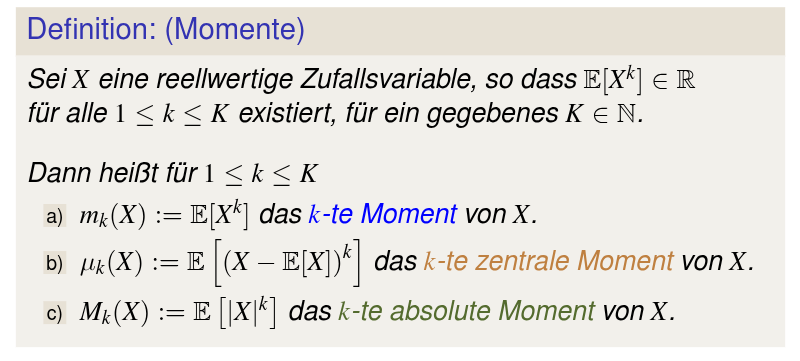 Momente der Exponentialverteilung Momente der Normalverteilung Momente der Poisson-Verteilung