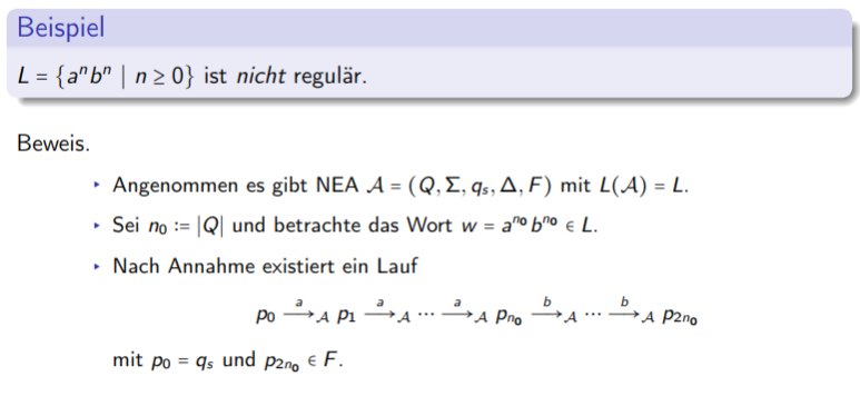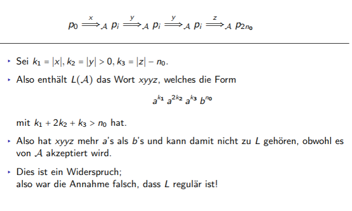 • Nichtregularität einer Sprache