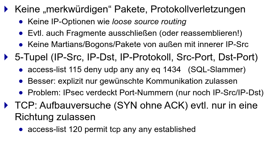 Kriterien für Paketfilter