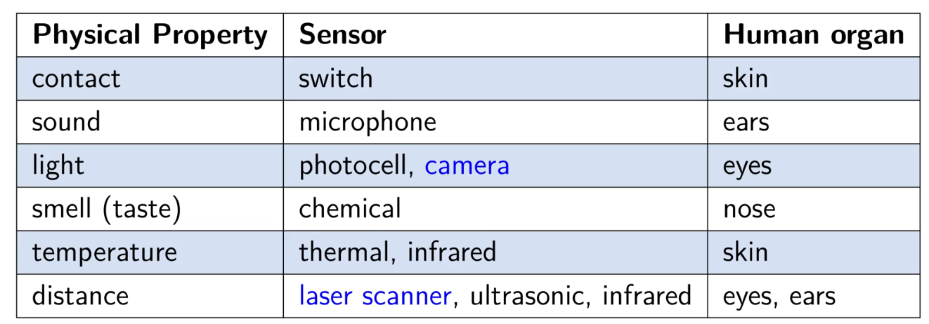 Exteroceptive sensors - measure the environment directly