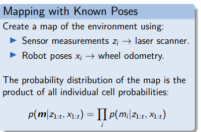 - It performs fast online learning of occupancy Grid Maps.