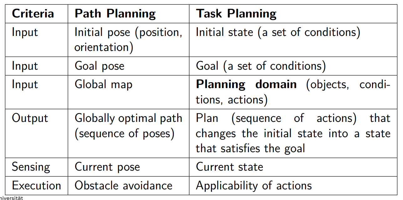 - In this lecture, we will look at state-space planning, which is used by classical task planners.
