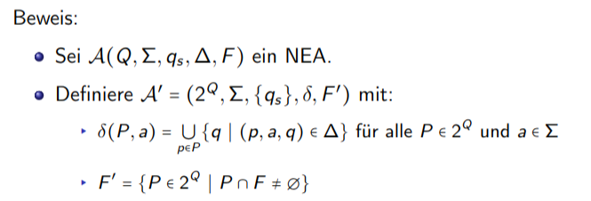 Definition Zu jedem NEA kann ein äquivalenter DEA konstruiert werden.