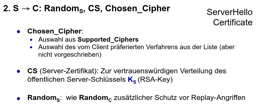 ⇒ Server authentisiert sich durch den nachweis des privaten Schlüssel.
