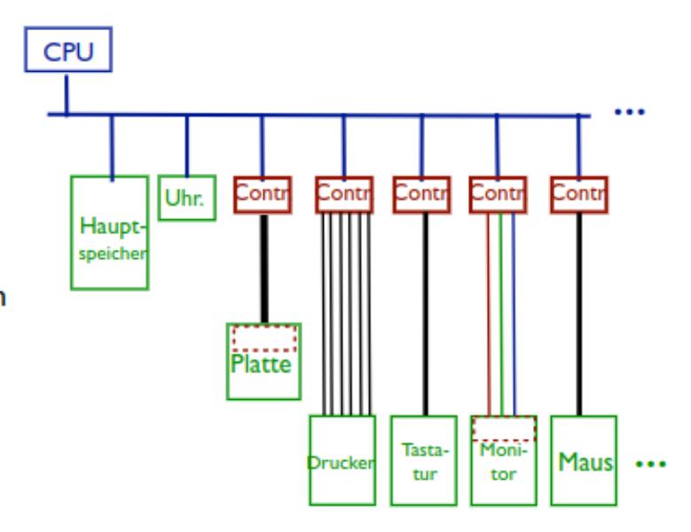 - CPU über Bus mit Vielzahl von “Geräten” verbunden.