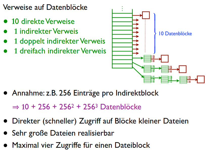 - Datei-Inhalt: Block-orientiert mit speziellem Block-Index (s. unten)