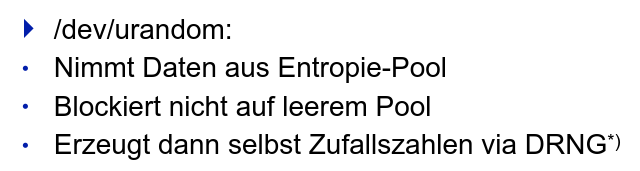 Linux Entropiepool Mit Pseudozufallszahlengenerator DRNG: Deterministic Random Number Generator DRBG: Deterministic Random Bit Generator