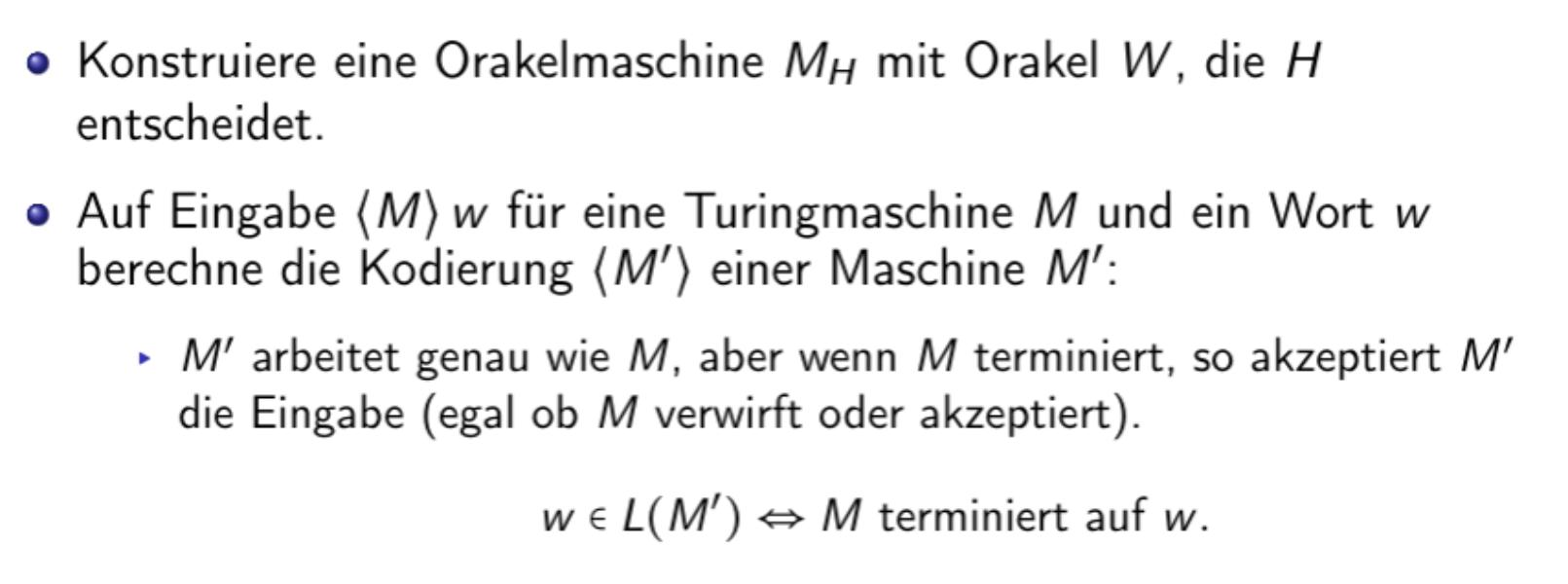 Beweis H \leq_{T} W