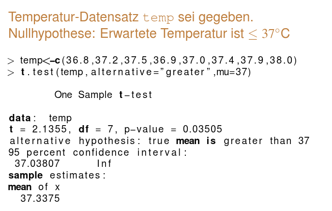 - Einstichproben t-Test: